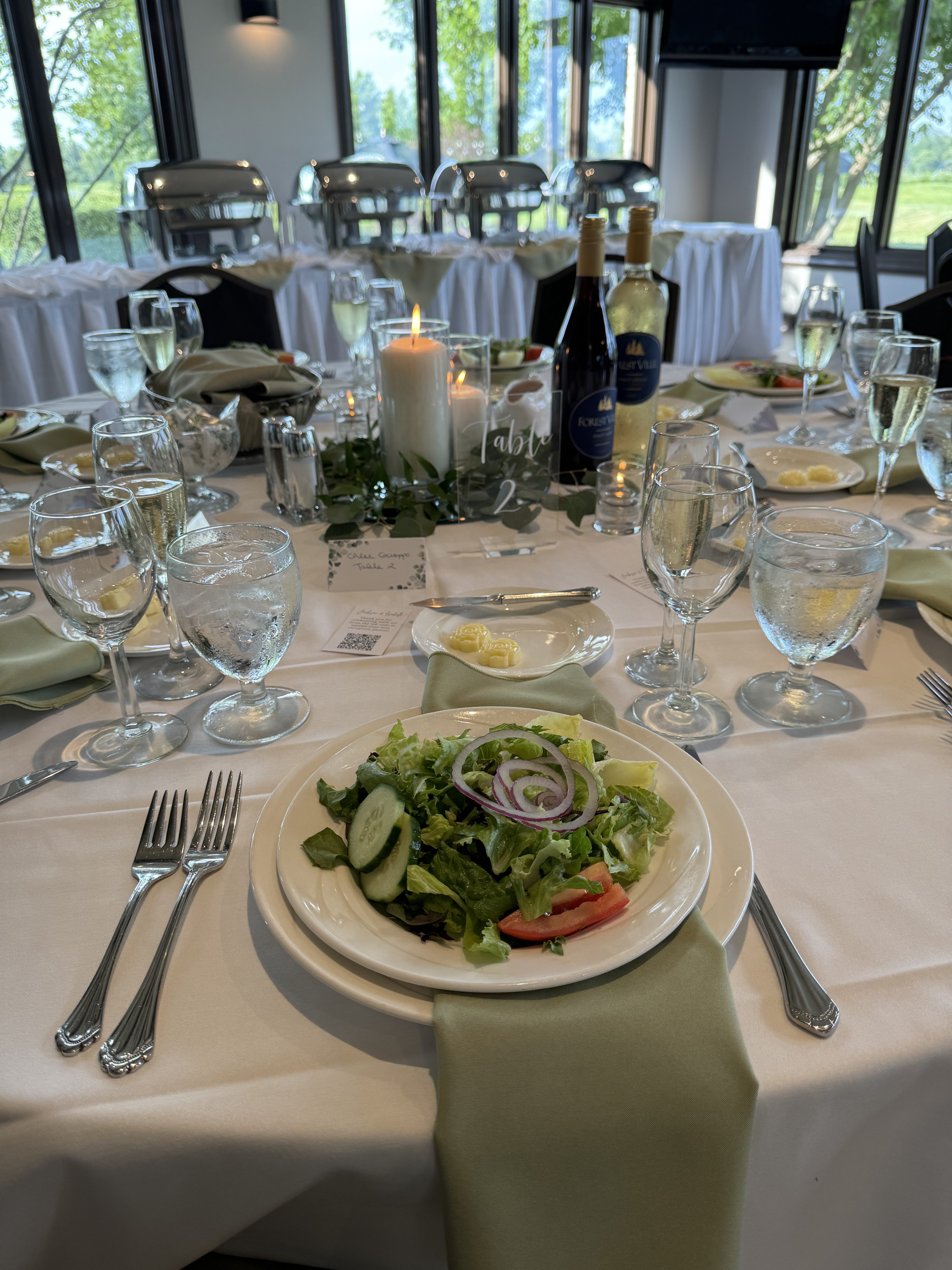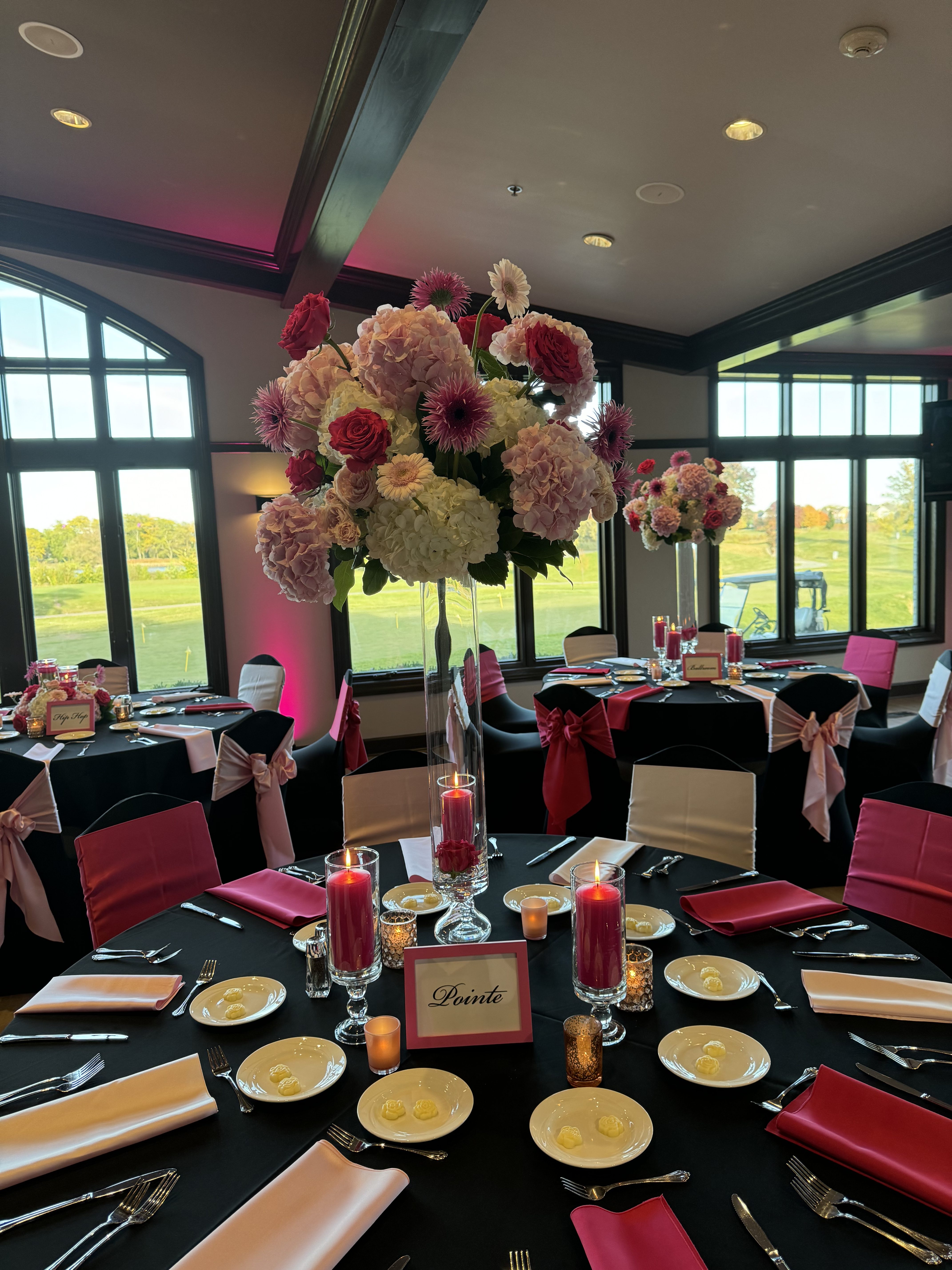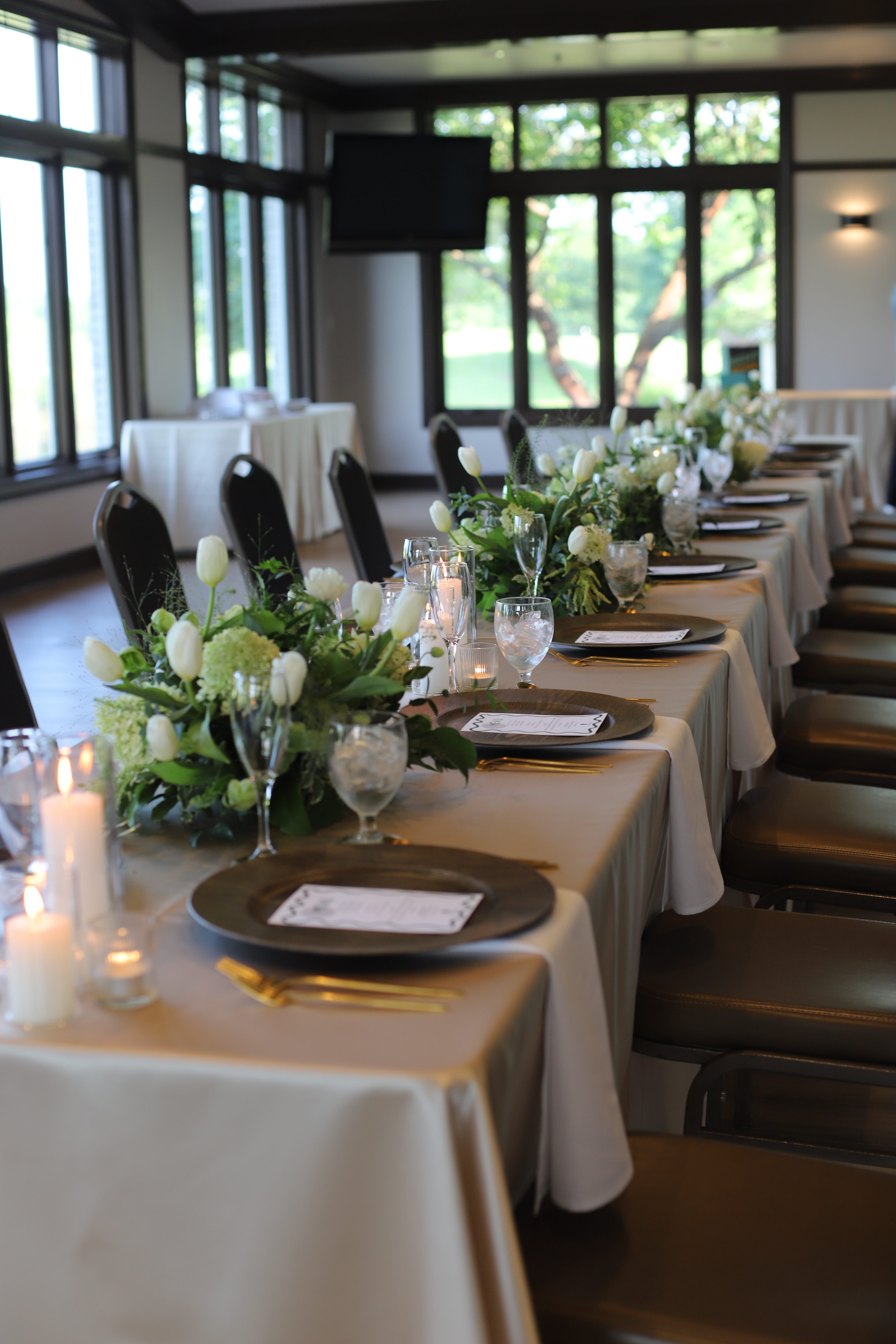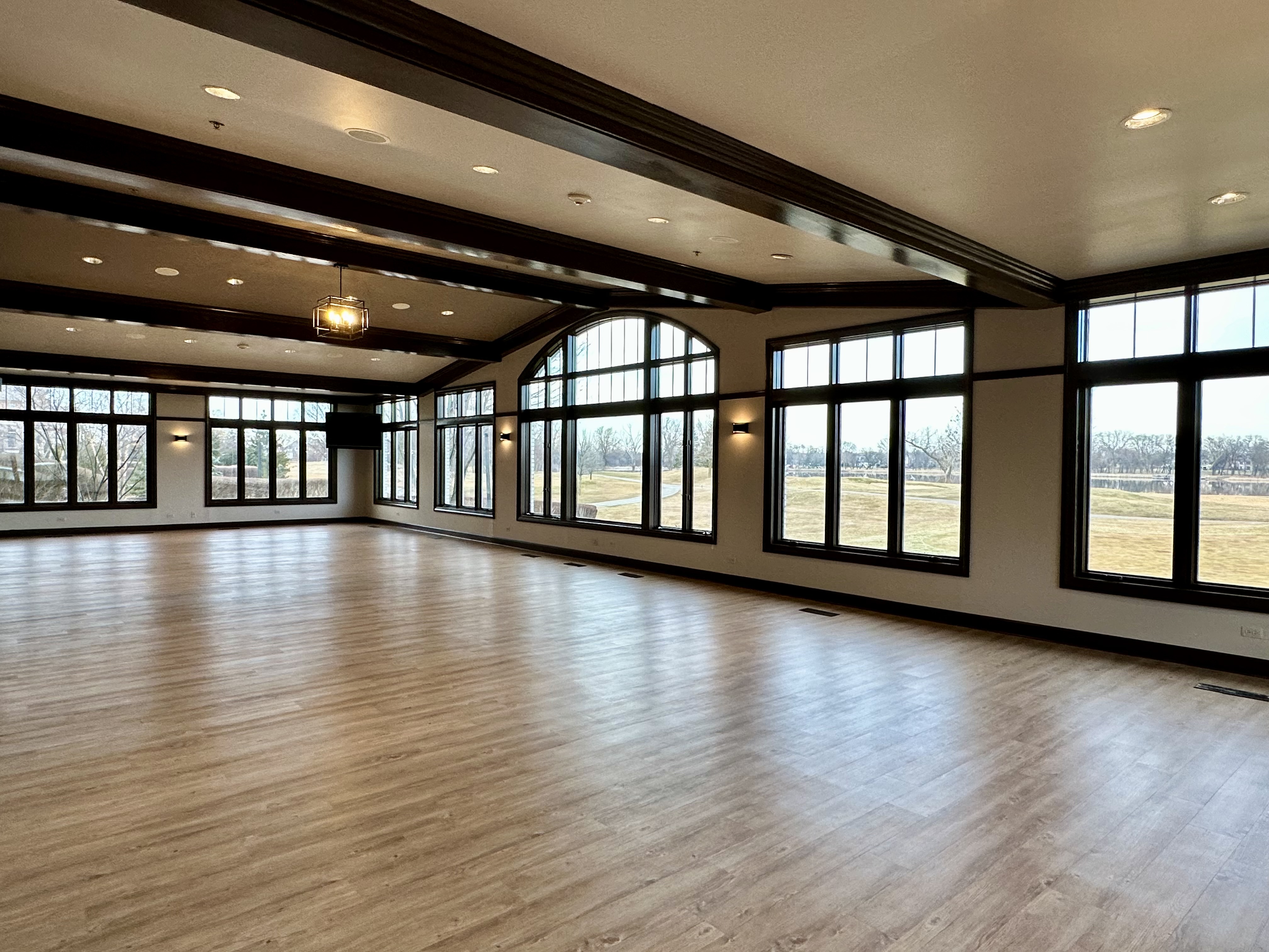 Our Space: Our newly renovated Four Seasons Room is a modern-rustic area with floor to ceiling windows that hosts 96 guests seated, and 140 standing or cocktail set-up. The space offers incredible views of the golf course along Lake Charles and is perfectly suited for celebrations or more intimate gatherings. The spectacular views, exceptional menu selections and unmatched service will make your special event a memorable experience.